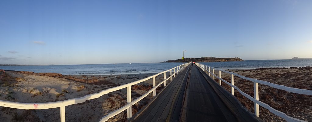 Daarna gingen we nog eens de baan op, voor de laatste 45 minuten tot Victor Harbour. Daar wandelden we na het diner nog even over de pier tot op Granite Island, maar daar valt weinig over te vertellen.